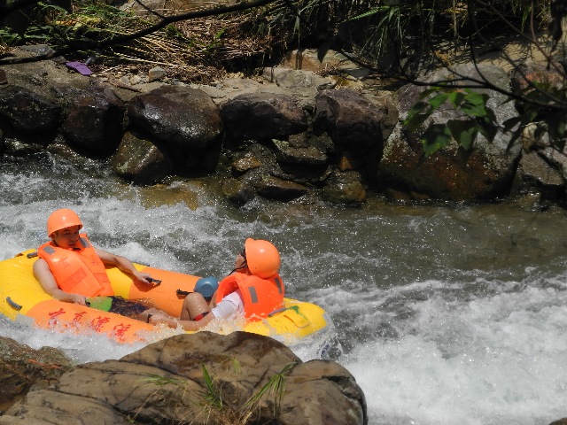 下昼在素有“华南第一漂”的玄真举行漂流,全程水质清亮,溪水自山涧与茂林间汇流而成,河流怪石嶙峋,转弯抹角,急流一直,各人你追我赶,猖獗吊水仗,真正感受到人与自然的协调与亲近,感受到纵情自然的无限兴趣!